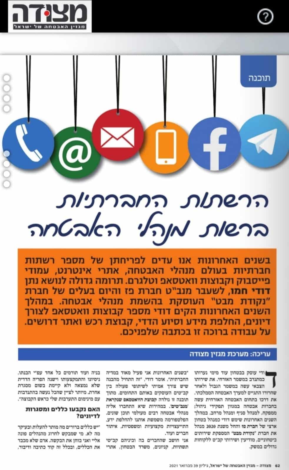 בעיתון מצודה כתבו עלינו ועל חשיבות האבטחה ברשתות חברתיות